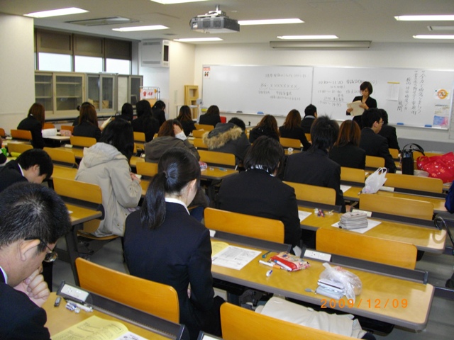 の実施風景です。情報ビジネス科では、就職試験本番同様、