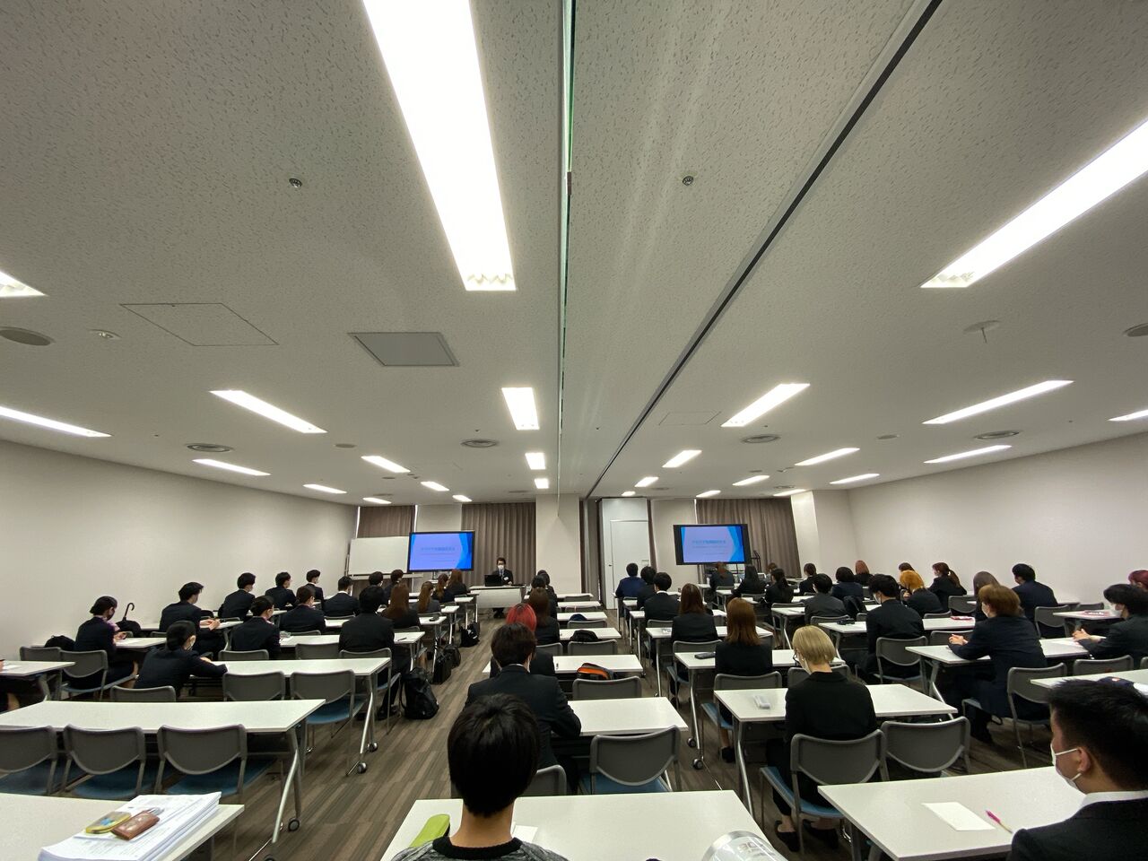 なんと入学してから初めて情報ビジネス科1年のホテルコース、秘書事務コースの2つのコースが集合したんです