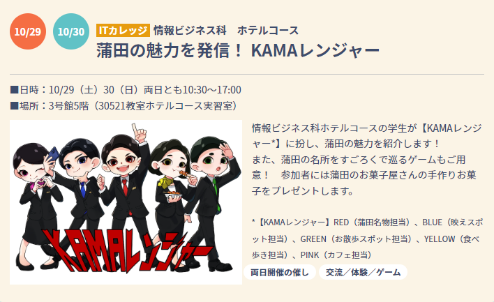 学生がKAMAレンジャーに扮して蒲田の魅力をお伝えします